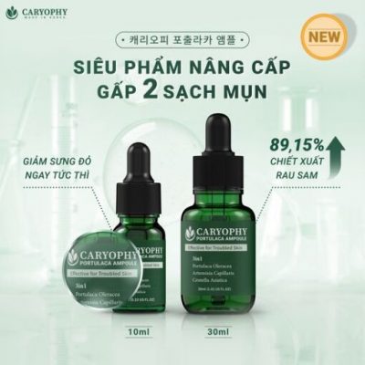 ✔️ Serum Caryophy Portulca Ampoule là Serum trị mụn thâm Hàn Quốc với dung tích 10ml có khả năng trị mụn, trị thâm, dưỡng ẩm, kháng khuẩn kháng viêm, phục hồi da và chống lão hóa toàn diện.